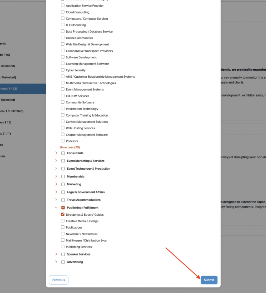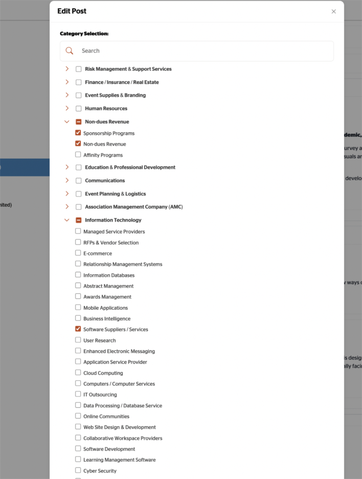 Note: Any paid company listing or ASAE member will be able to view your RFP, but only the contacts for the categories or list you select will be notified of your published RFP.